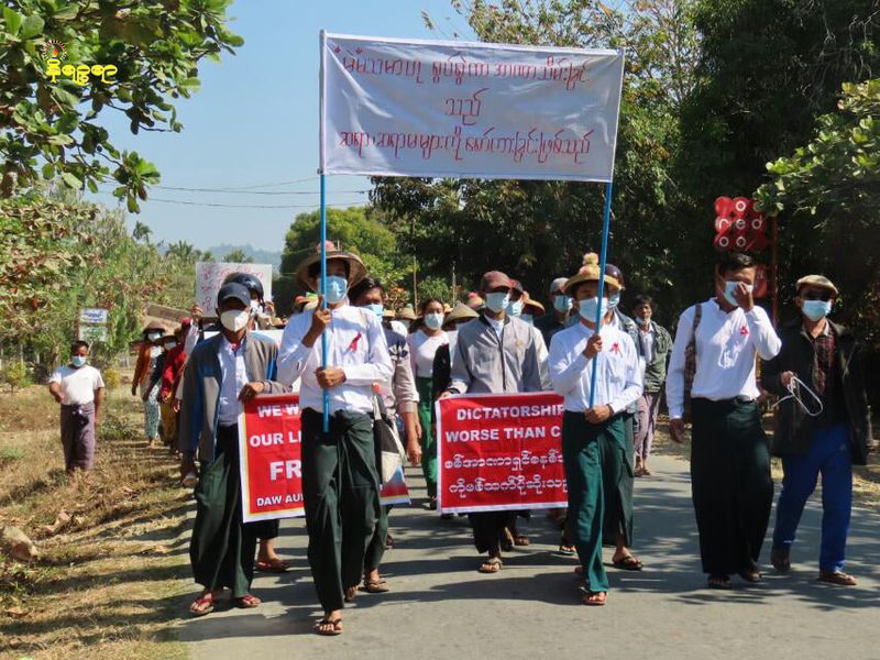 နိရဥ္စရာ၊ ဖေဖော်ဝါရီ ၁၃ / ၂ဝ၂၁တပ်မတော်အာဏာသိမ်းမှုဆန့်ကျင်ဆန္ဒထုတ်ဖော်ပွဲကို ရခိုင်ပြည်နယ် ဂွမြို့နယ်ရှိ ကျိန္တလီမြို့တွင်ပြုလုပ်နေသည်မှာ ယနေ့ဆိုလျှင် (၅)ရက်ဆက်တိုက်ရှိပြီဟု ဒေသခံများက ပြောသည်။ယနေ့ ဖေဖော်ဝါရီလ ၁၃ ရက်နေ့တွင်လည်း ကျိန္တလီမြို့တွင် နံနက် ၁ဝ နာရီမှ မွန်းတည့် ၁၂ နာရီအထိ ပညာရေးဝန်ထမ်းအများအပြားအပါအဝင် အင်အား (၁)ထောင်ခန့်က မြို့တွင်း လှည့်လည်ဆန္ဒထုတ်ဖော်ခဲ့ကြသည်ဟု သိရသည်။